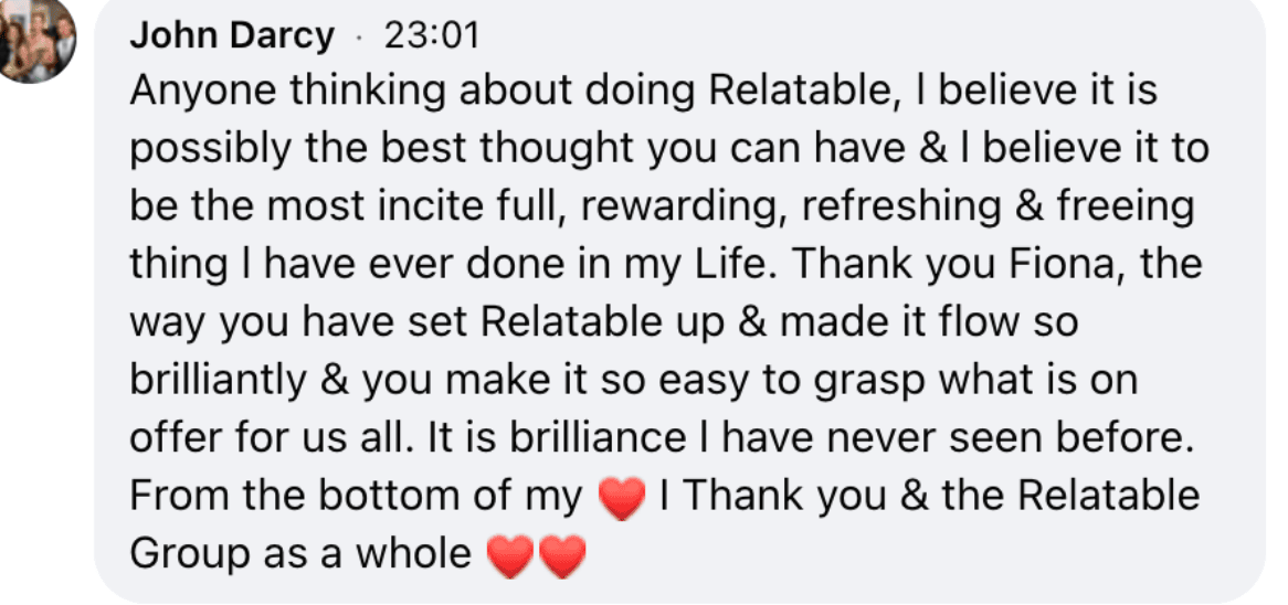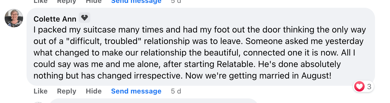 For over 15 years, I’ve helped thousands of people transform their relationships, and the results speak for themselves. The clarity, connection, and ease you’re searching for? It’s already within you. Relatable simply shows you how to uncover it.